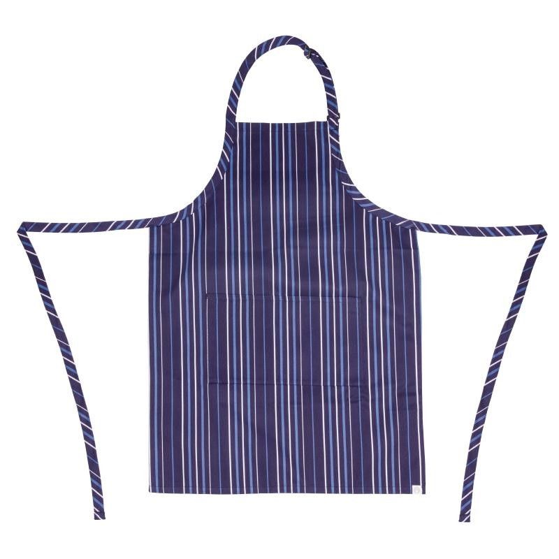 This colourful striped Chef Works bib apron in navy and blue comes with adjustable neck buckles which can lengthen or shorten to ensure a perfect fit for any stature. This apron features a reinforced bib front and reinforced seams along the pressure points for great durability, as well as a protective treatment which ensures stains wash out easily.