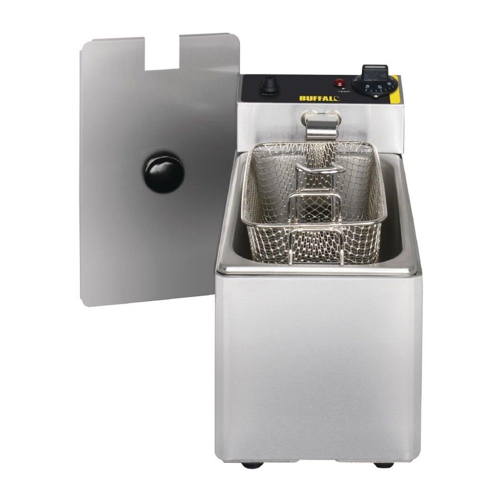 The Buffalo L370 is a great value deep fat fryer which is thermostatically controlled for maximum usability and efficiency. The tank has a capacity of 3 litres and is fast to recover after operation, ideal for busy periods where you need a high output. The lid and basket for this deep fat fryer are supplied.