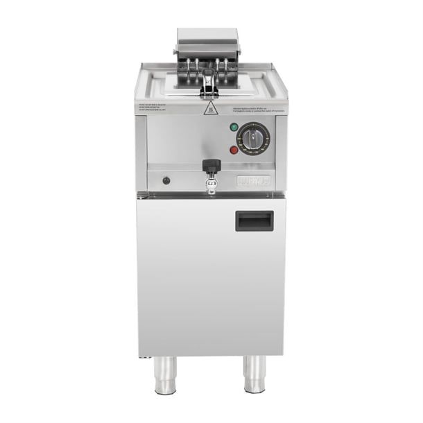 Powerful and reliable, the Buffalo 600 Series freestanding fryer is a great choice for everyday use in busy professional kitchens. With its generous 8 litre capacity and 6kW element, the fryer provides plenty of performance for cooking perfectly crispy chips, chicken and seafood, whether that's in a restaurant, pub kitchen or canteen. With its single strong basket, the Buffalo 600 Series fryer provides a generous amount of frying space, so you can cook larger items without having to remove the basket. And thanks to the powerful element, recovery times are reduced too, allowing you to quickly turn around dishes without having to wait extended periods for the oil to return to the correct temperature. Below, the fryer include vital additional storage space. As the fryer features a front drain tap, not only does this mean it's easy to drain oil, it also opens up the base to be fully usable - no fryer components are in the cupboard section. Perfect for storing away utensils or pots. The Buffalo 600 Series fryer is easier to clean too, with strong stainless steel construction throughout and simple hinged elements which maximise access to the tank. Part of the Buffalo 600 Series, this electric fryer is designed to suite with other 600 Series appliances, giving you a tidy, seamless cook line whatever the size of your kitchen.