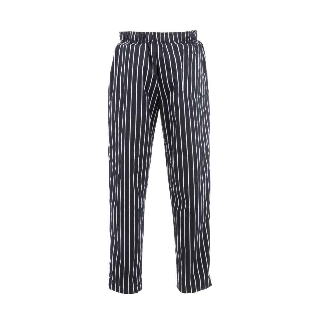 These Chef Works designer baggy pants make your chefs look professional and feel comfortable all day long. Presented in a black-and-white striped pattern, these 2XL sized pants can be paired up with white and/or black chef's jackets to create a classic-looking chef's uniform. The legs of these Chef Works designer baggy pants are tapered, which means that these will become narrower towards the bottom, thereby following the natural shape of the legs. This makes them ideal to wear all day long because the design prevents constriction. The pants also come with an elasticated waistband that ensures a secure and comfortable fit.