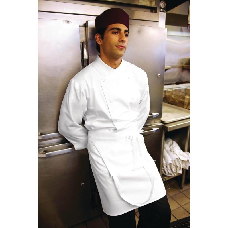 XS-5XLThe St. Maarten Basic Chef Coat is constructed with 6.2 oz. poly/cotton fabric with French cuffs and a cross-over collar. This is a long-sleeve, double-breasted chef coat with cloth-covered buttons.