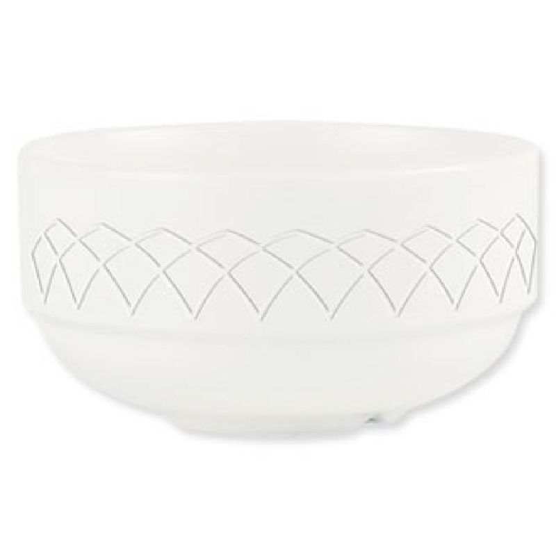 A fine china 275ml consommé bowl, without handles, from the Jardin collection by Churchill, which embodies a timeless appeal, enhanced by classic design. The delicate embossed border reflects the elegant arches of windows and brings a sophisticated ambience to the dining experience. The bowl is ideal for all types of professional catering environments as the high alumina content of the china gives it maximum strength. Coupled with a superior glaze which is resistant to the erosion caused by dishwashing and damage caused by cutlery and a chip resistant rolled edge, Jardin crockery can withstand the rigours of daily use and will stand the test of time.