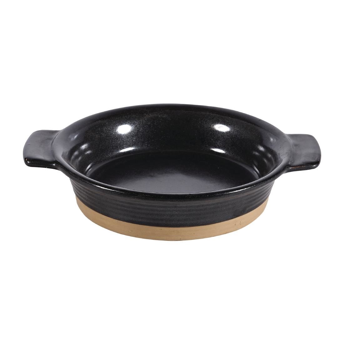 With a glazed black top that brings out the colours in fresh, vibrant ingredients and an exposed stoneware base that adds a dash of rustic charm, it's perfect for any plate with traditional roots. The embossed lined finish gives it a hand-thrown pottery look, adding to its authentic feel, while the exposed stoneware base pairs well with wooden boards and platters, allowing you to create a truly traditional looking table top, ideal for hearty meals with a home-cooked feel.