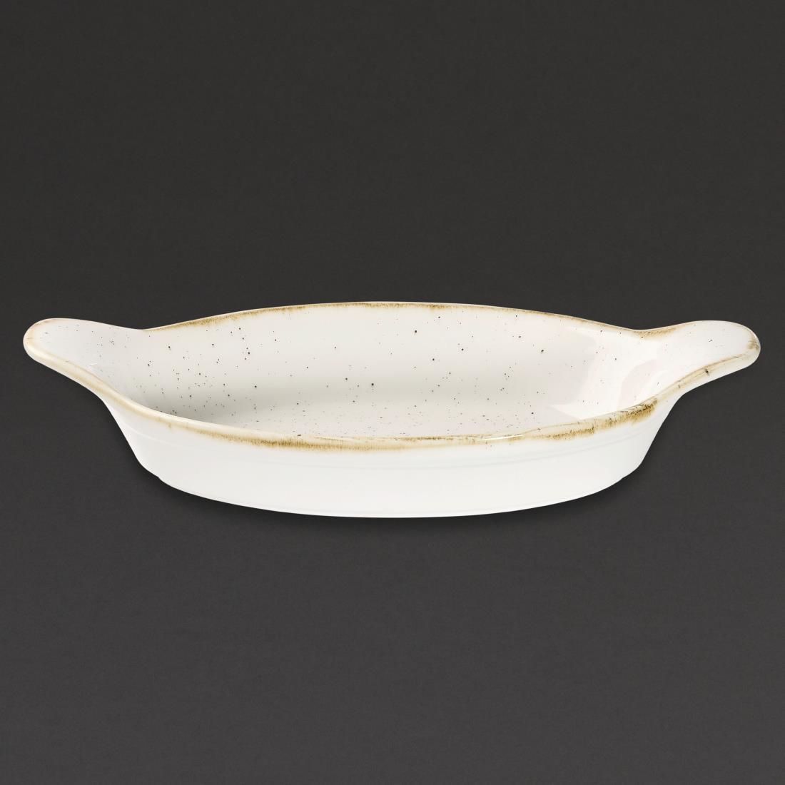 These oval eared 232(L)mm dishes are easy to carry and handle, making them perfect for sharing at table. As a result, these oval eared bowls are ideal for sharing vegetables or using as gratin dishes. Available in 205(L)mm sizes, these eared dishes are finished with a hand painted rim and a kiln-reactive speckled glaze.