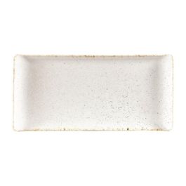 Present your handcrafted mains in exquisite style with these 145(W) x 300(L)mm Churchill Stonecast barley white rectangular plates. Featuring a sleek barley white colourwash, these large rectangular plates perfectly harmonise with the vibrant colours in your dishes, allowing the rich palettes of your fresh ingredients to take centre stage and delight guests. Boasting a hand-applied, golden brown rim and speckled finish, no two plates look the same, adding real charm and character to your food presentation. A fully glazed foot also allows for safe stacking, enabling more space-efficient storage in your kitchen.
