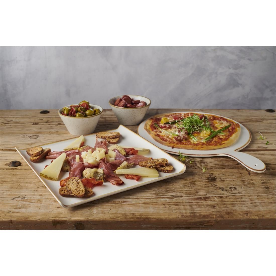 Stonecast Melamine features large rustic buffet pieces in a matte finish to complement the hugely popular ceramics collection. The design echoes the Stonecast ceramic collection with a speckled