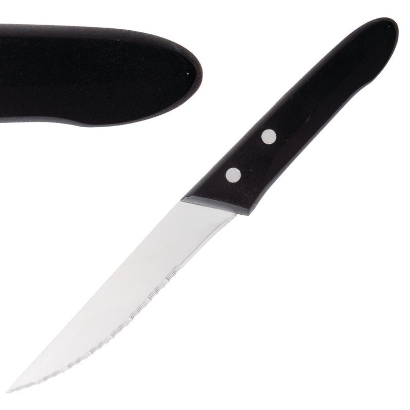 Box Quantity: 12Déglon professional steak knives which are dishwasher safe with black thermoplastic handles and stainless steel blades.
