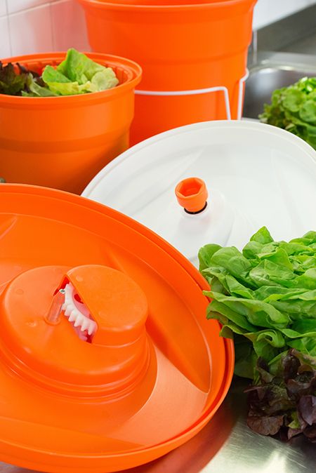 Prepare crispy salads efficiently and hygienically with the premium Dynamic 20 litre sealed salad spinner. Designed with a manual wind handle and smooth gear system, this kitchen essential spins up to eight heads of lettuce quickly and easily, giving you perfectly prepared leafy greens in no time at all. Boasting a sealed cover, the spinner prevents the retention of water or bacteria, ensuring your preparation is always safe and sanitary. The sealed cover also prevents the risk of cross contamination or damage caused by salad leaves getting caught in the gears. A heavy duty construction also allows the spinner to withstand intensive daily use, giving you superb results time and time again.