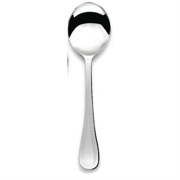 Elia Reed soup spoons are crafted from high-quality 18/10 stainless steel, offering a perfect balance between contemporary style and classic elegance. This fine-grade cutlery is defined by a subtle yet distinctive border along the handle, making it a versatile choice for a wide variety of table settings.