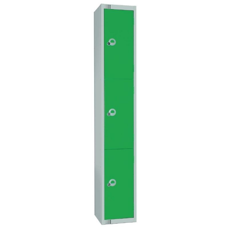 Robust, versatile lockers with welded plinth between doors to improve inter-compartment security. Available in 300mmor 450mmdepths, one to eight door options, five colours, flat or sloping top and all with either padlock or camlock fittings (padlock not supplied). Single door lockers feature top shelf and double coat hook, double door features double coat hooks.
