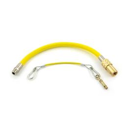The GASM8 Quick Release Caterflex Hose - 3/4" x 1500mm is a high-quality commercial gas hose designed for use in catering appliances running on Natural Gas or LPG. This hose is engineered to meet the specific requirements of gas-fired catering installations and ensures safe and flexible connections between appliances and the gas supply. Constructed from corrugated stainless steel tubing, the hose is finished with a durable, non-wrinkle yellow PVC cover, making it highly resistant to wear and tear in busy kitchen environments.