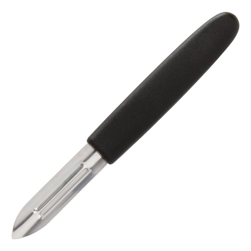 Prepare potatoes with ease, thanks to this Gustav Emil Ern potato peeler. Constructed from the highest grade stainless steel, the utensil peels ingredients with minimal effort, drastically speeding up your preparation times. Featuring a moulded Profilon handle, this kitchen essential is also incredibly ergonomic in the hand, helping you to comfortably peel large quantities of potatoes. This high-performance peeler is ideal for any commercial kitchen looking to become more efficient in their preparation.