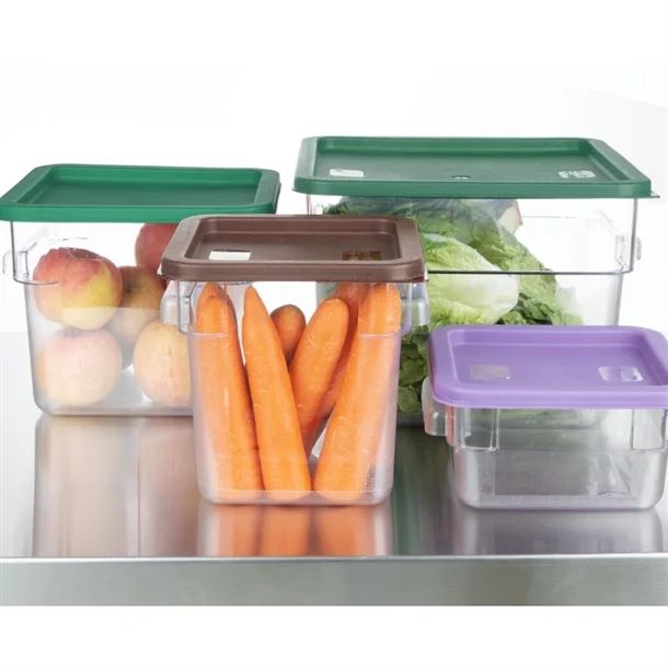 Help keep food fresh with the medium green square food container lid from Hygiplas. Ideal for regular use in a busy food preparation area, the lid is dishwasher and freezer-safe. Perfect for cold storage and can be cleaned easily - great for versatile use. Colour coding allows easy identification of contents, keeping ingredients organised and helping to avoid the risks of cross-contamination. Green lids are typically used to indicate salad or fruit.