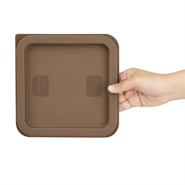 Hygiplas HY422 Polyethylene Square Food Measuring Container Lid Brown Small