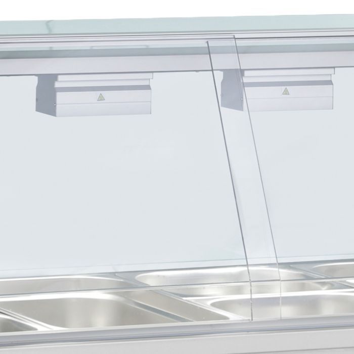 Equipped with one halogen lamp per gastronorm pan, an ambient base for storage and a glass canopy, the MFV714 is the perfect freestanding bain marie that’s ideal for a busy and demanding environment. Featuring a high-grade exterior and interior, to further support the unit’s sturdy design and make it easy to keep clean and sanitised.