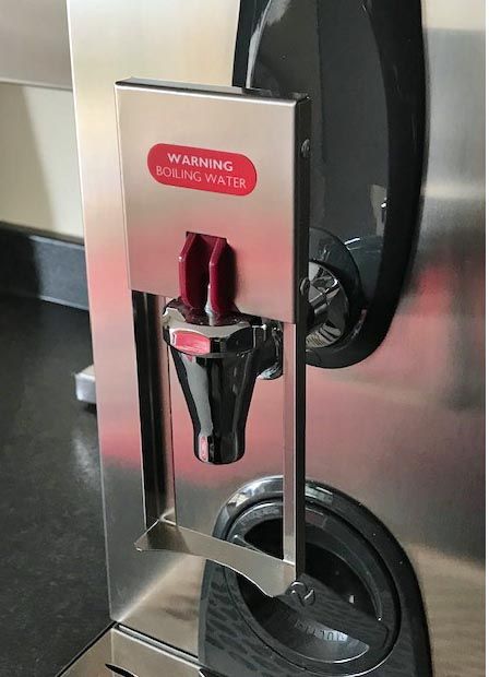 A simple to install accessory manufactured from grade 304 stainless steel which enables the dispensing of boiling water by pushing back on the handle with a cup. This easily fits over the existing hands operated handle, where there are particular concerns around hygiene.