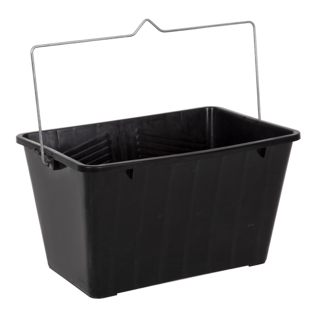 - Heavy-duty bucket is ideal for ladders and features a looped handle for use with squeegees up to 18"