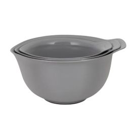 This KitchenAid 3 piece mixing bowl Set includes one 2.4 litre (81 fl. oz) bowl, one 3.3 litre (112 fl. oz) bowl and one 4.3 litre (145 fl. oz) bowl. All feature non-slip bases that increase stability while mixing, plus pouring spouts to reduce spills when transferring ingredients. The bowls nest together when not in use for easy storage, and are dishwasher safe for easy clean up. They are also microwaved safe for up to five minutes. A superb mixing bowl set for everyday use.