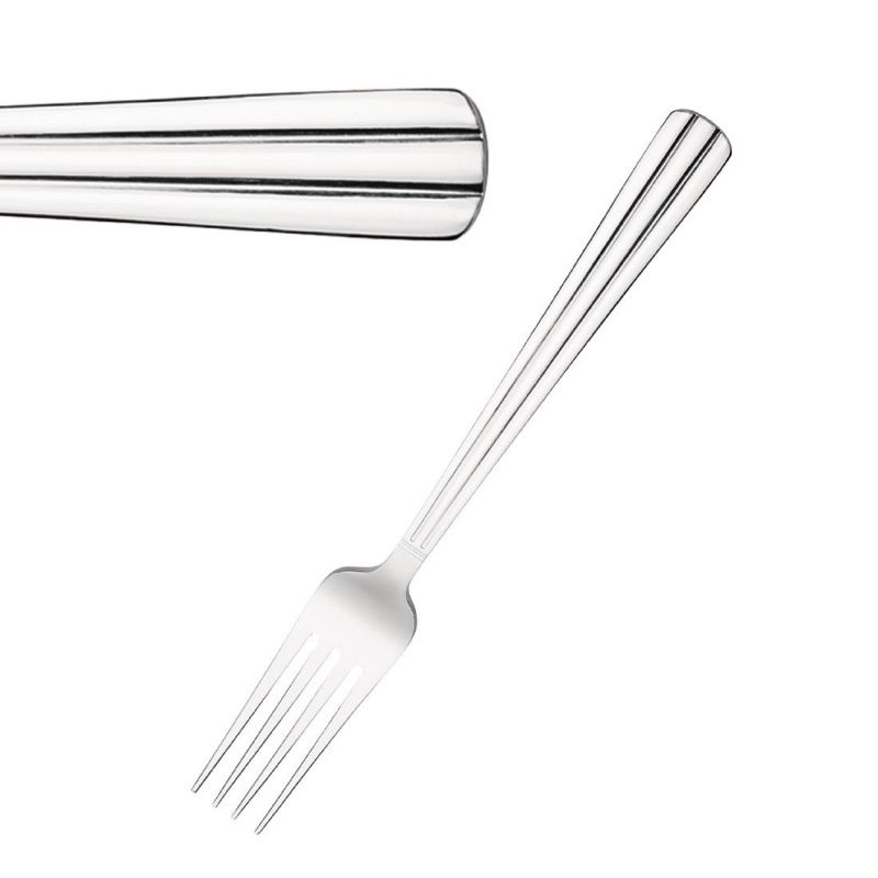 The linear design on the handle gives a vintage, art deco appearance to the cutlery range. Perfect for casual dining establishments. Polished and smoothed to a high shine finish.