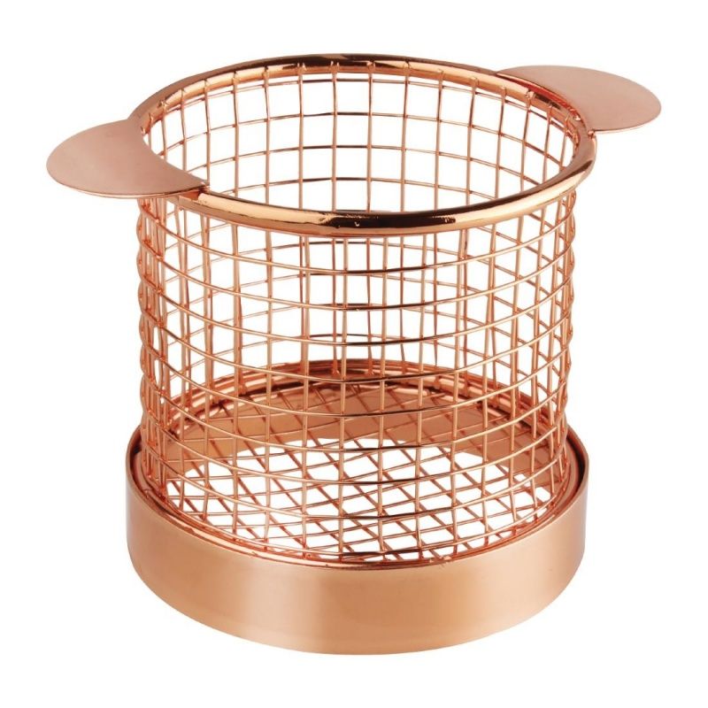80(H) x 80(Ø)mm. Stainless steelCopper coloured presentation basket perfect for serving chips on the side of your dishes. Line with greaseproof paper for a gastropub look.