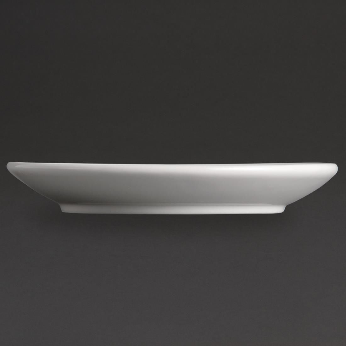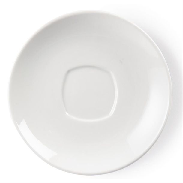 This pure white, rounded square 6" saucer from Olympia is designed to fit cup Y115, and provides a great value and hardwearing porcelain crockery solution for busy hotels, canteens, casual dining restaurants and cafés. Strengthened rolled edges ensure the saucer is chip resistant and a fully vitrified body gives great glaze durability, making it ideal to withstand the rigours of the professional catering environment. The saucer can be stacked to help maximise storage space, and is oven, microwave, dishwasher and freezer proof. This item is guaranteed by the Uropa Edge Chip Warranty.