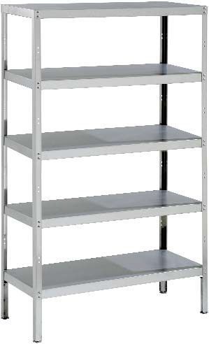 A high quality stainless steel storage rack which has 5 solid shelves and adjustable feet. 300mm deep which will require a wall tie bar, the legs are made using 30mm box section.