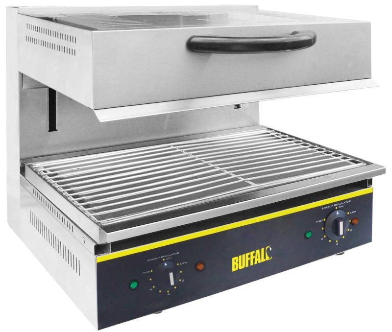 The Buffalo CD679 is a highly durable electric adjustable salamander grill which has a stainless steel construction and metal element, features variable heat control for effortless cooking. This, along with an adjustable grill height making it ideal for both grilling and gratination, makes this grill one of the most versatile and practical grills on the market. It can also be wall mounted or used on countertops (mounting brackets sold separately).