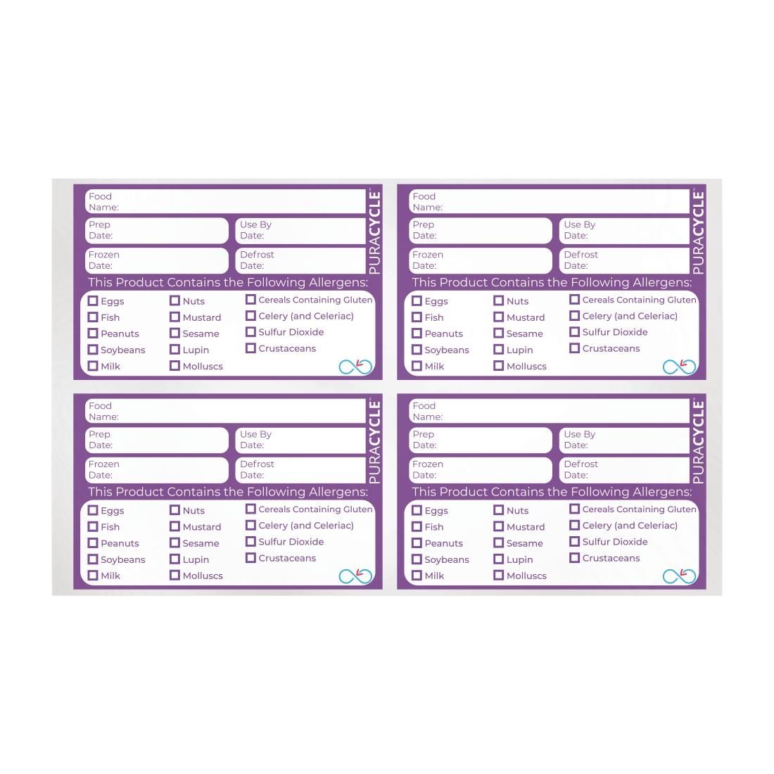 Ensure your customers are protected from potential allergens, with this pack of 20 x Puracycle reusable labels. Boasting an innovative three-layered design, your food storage containers can be cleaned in the dishwasher without having to remove these labels. This means each one can be reused for a whole year without needing to apply a new label.