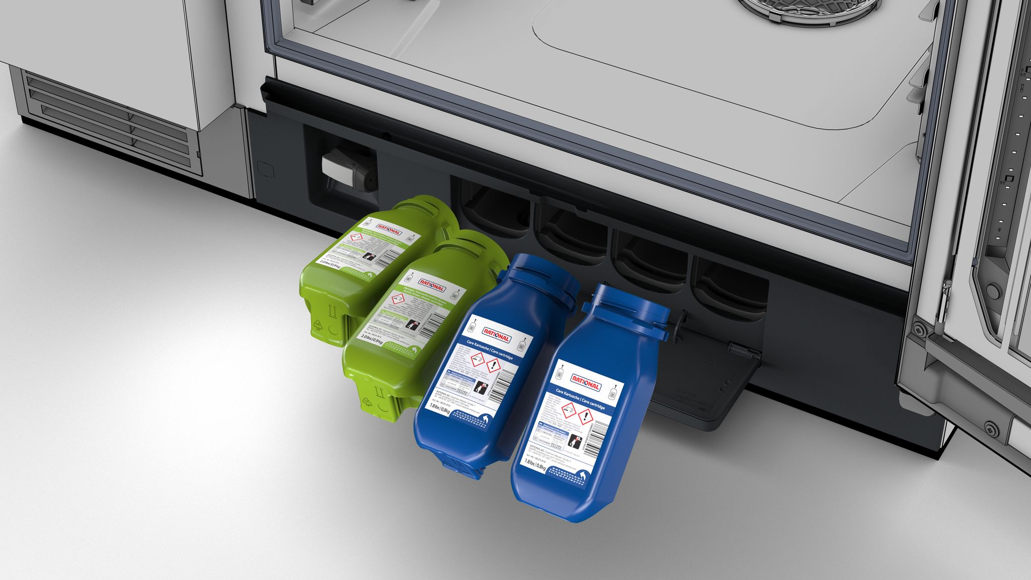Gone are the days when cleaning and care products had to be dosed by hand for each cleaning process or cleaning was forgotten altogether. The iCareSystem AutoDose starts either at a specific time, for example always after closing time, or at the push of a button whenever it fits into the daily routine. In the settings, the cleaning can be programmed separately for each day according to appliance usage or according to the weekly schedule. The iCombi Pro automatically retrieves the cleaning products in the required concentration from the cartridges.