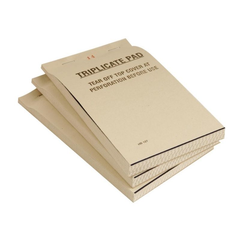 Triplicate endfold check pad. 50 leaves. Pack quantity 50.End fold. 50 numbered sets per pad.