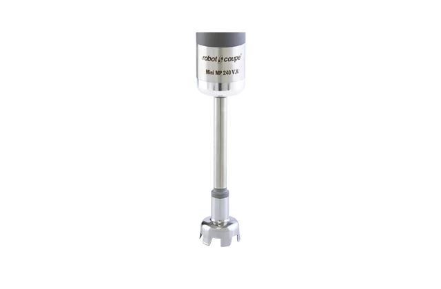 The Robot Coupe Mini MP 240 V.V. is a powerful stick blender with a processing capacity of 15 litres. Manufactured from high quality stainless steel, the appliance is versatile and easy to use. It can be used freehand in suitable pots and pans to blend, puree and cut to produce fabulous foods such as soups, vegetable purees, fruit compotes, bisques and vegetable or fish mousses.