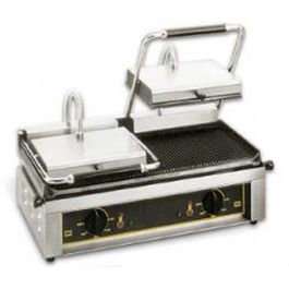 The Roller Grill Professional PANINI D FT cast-iron contact-grill is designed for intensive use with the cooking of 96 panini per hour! Its cast-iron plates have a high power of thermic inertia: after 15 minutes of preheating, the plates restore heat and can be used continuously on a daily basis.