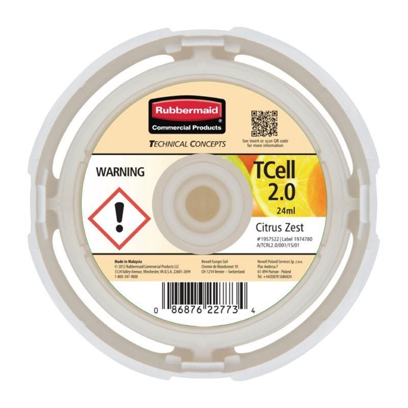 This citrus zest refill for Rubbermaid's TCell 2.0 Odour Control System delivers a consistent level of lemony fresh fragrance for 30-45 days. As the TCell 2.0 operates discreetly with no noise or moving parts, your guests are only likely to notice the pleasant smell and nothing else. The refill also contains Microtrans Technology which neutralizes odours instead of masking them, making your washrooms smell clean and fresh without leaving behind an overpowering scent.