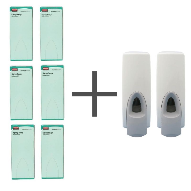 Offer contains: 6 x Rubbermaid Anti Bacterial Spray Soaps (CK435) and 2 x FREE Rubbermaid Spray Soap Dispenser White (GD840)