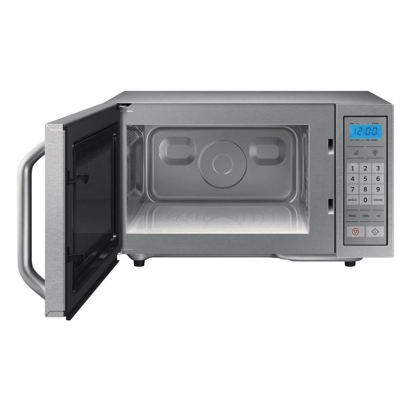 The Samsung CM1109/XEU will heat, cook and defrost your dishes and drinks with ease, thanks to this Commercial Microwave. Featuring Programmable Touch Pad control, this model can feature up to 20 custom settings that you can enter manually to match the meals you cook every day. Robustly built to deliver consistent results even under constant use, the program panel is illuminated by an LCD ice blue digital display that assists in streamlining the cooking process. As a light duty microwave this unit is best fitted for smaller catering businesses like cafes and bistros.