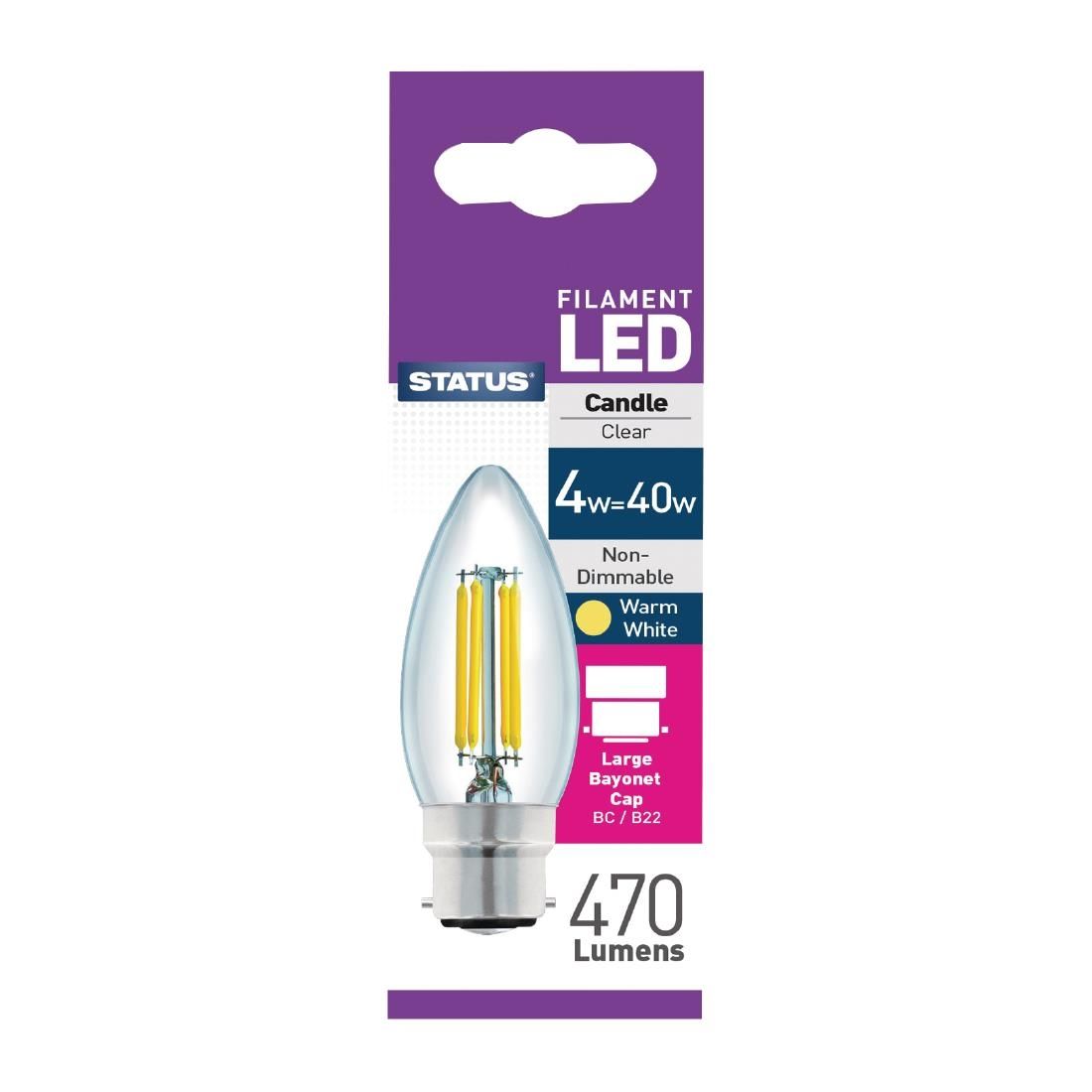 Status FW519 Filament LED Candle BC Warm White Light Bulb 4W/40W (DISCONTINUED)