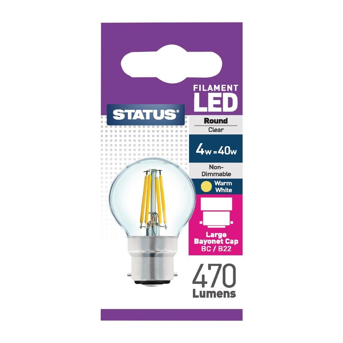 Status FW522 Filament LED Round BC Warm White Light Bulb 4W/40W (DISCONTINUED)