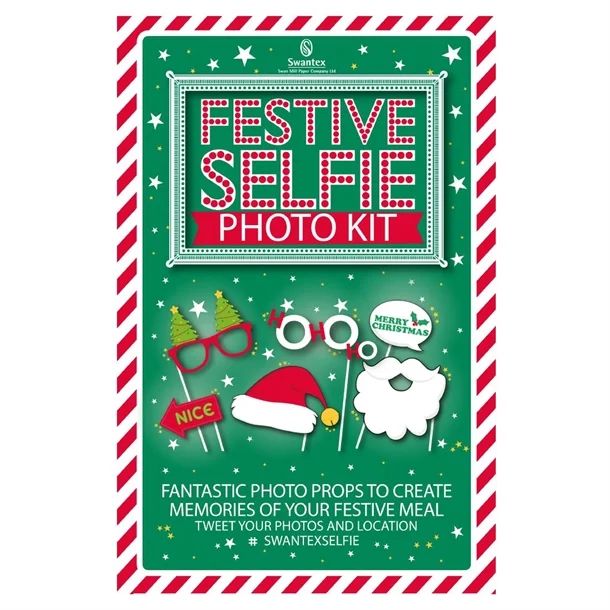 A fun addition to any Christmas party, this Swantex selfie kit comes with 24 different festive props. Made from sturdy 350gsm card, these selfie props are pre-assembled with card stick and can be recycled after use.