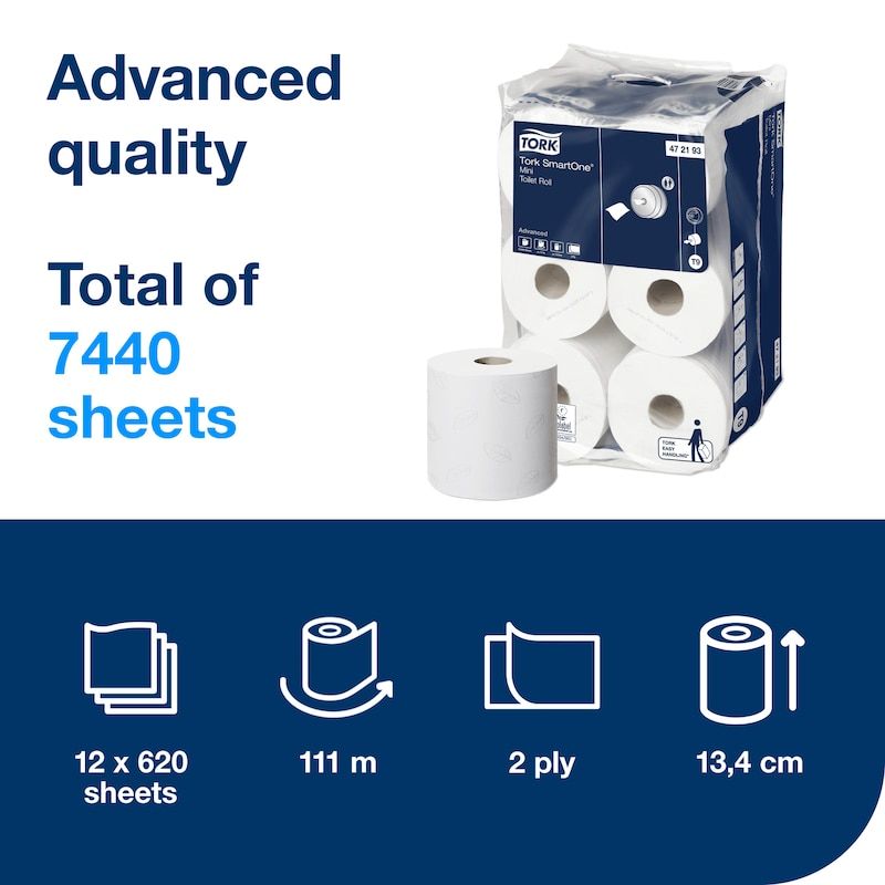 - For use with the Tork SmartOne mini toilet roll dispenser (FA701 - sold separately)