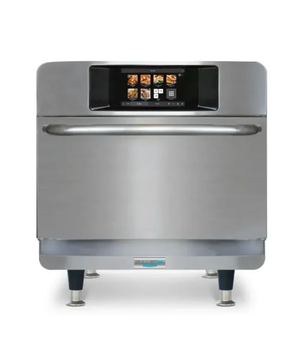 The TurboChef Bullet 3 Phase high speed oven uses radiant heat, high-speed air impingement, and side-launched microwave to cook food rapidly without compromising quality.