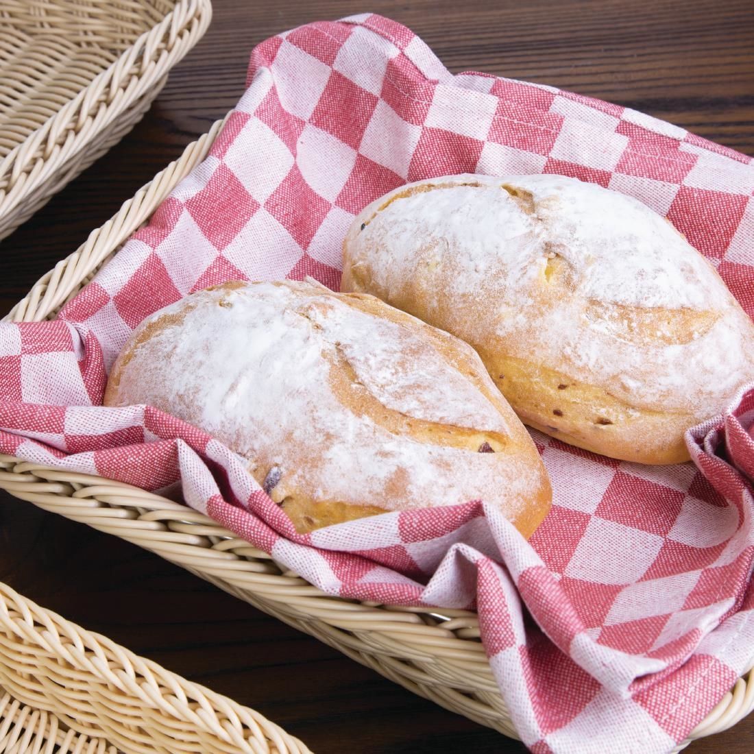 The attractive pattern also lets you get creative with your decorative basket lining and makes a charming backdrop for displaying fresh bread and other bakery items. Between uses, it's machine-washable for easy cleaning and a quick return to service - this Vogue tea towel retains its look and feel to thrive in busy commercial settings.