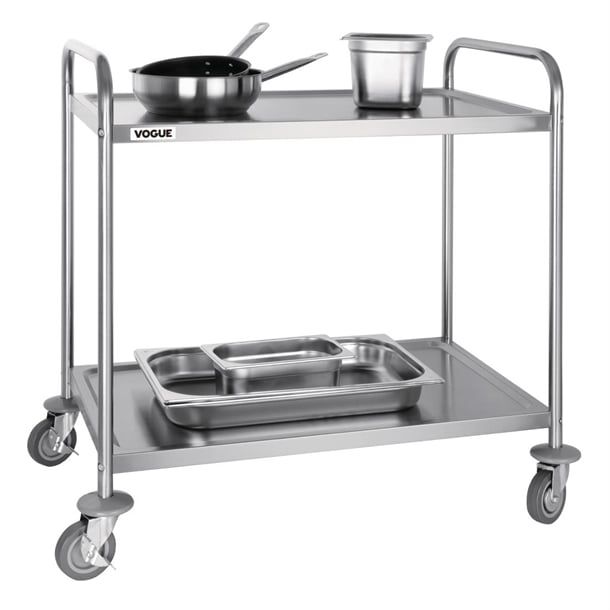 Vogue F998 Stainless Steel 2 Tier Mobile Clearing Trolley