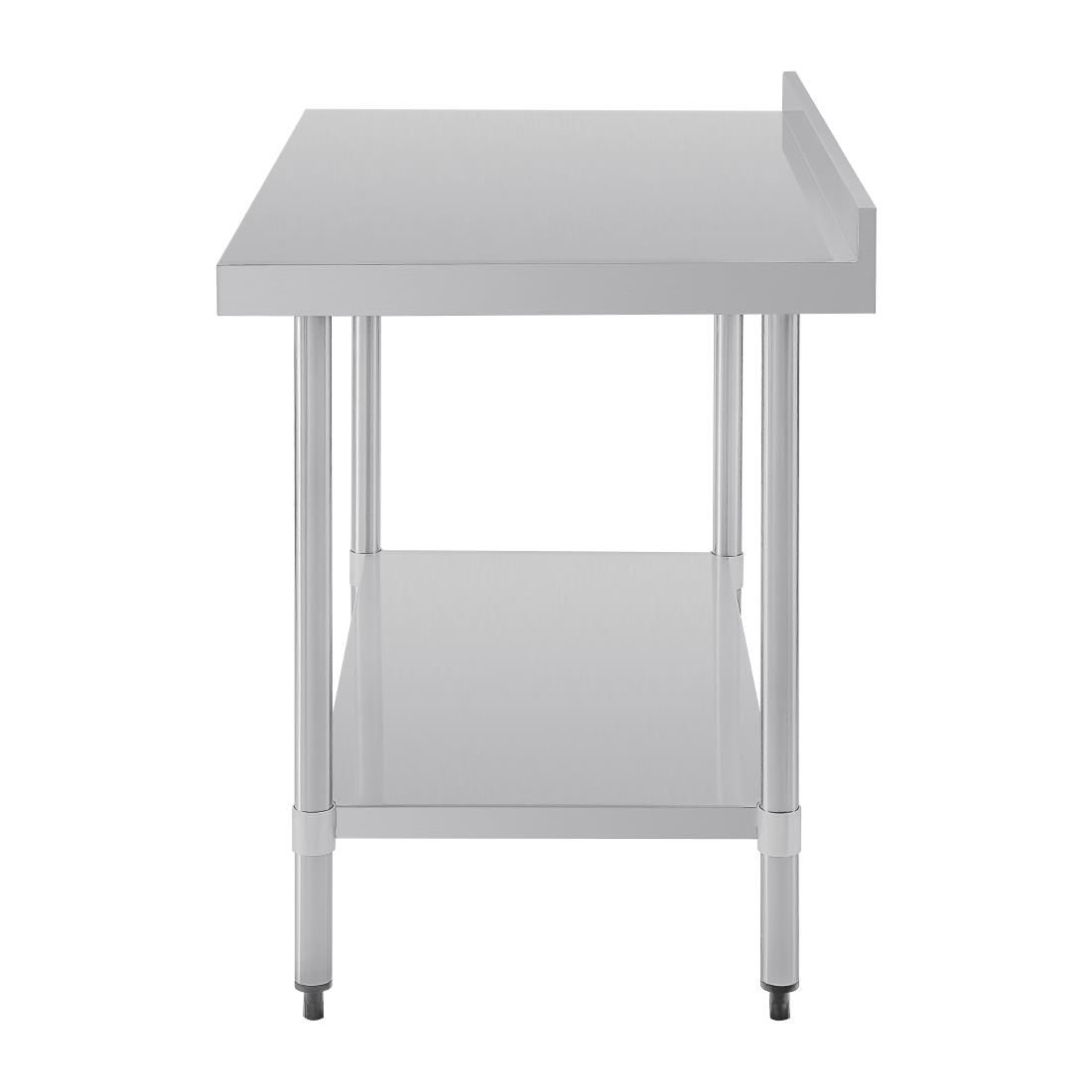 Give kitchen staff extra space with this 1200mm stainless steel prep table from Vogue. Featuring an upstand, the table is ideal for installation against the wall - stopping any food or utensils from falling down behind or splashing of food where it is hard to clean.