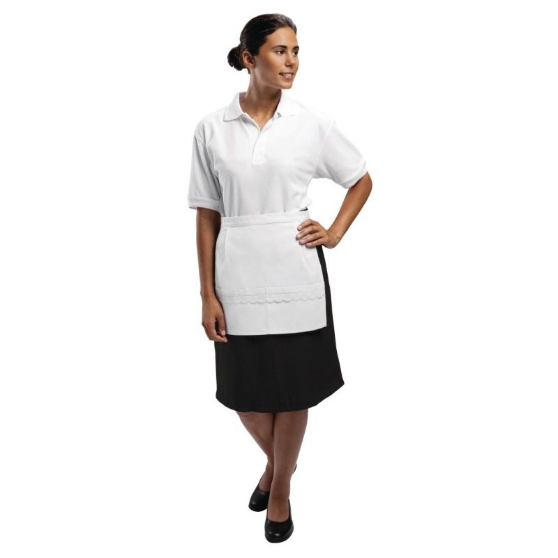 With pocket. Polycotton. One size fits all.Waiting aprons in easy-care white polycotton - one size fits all.