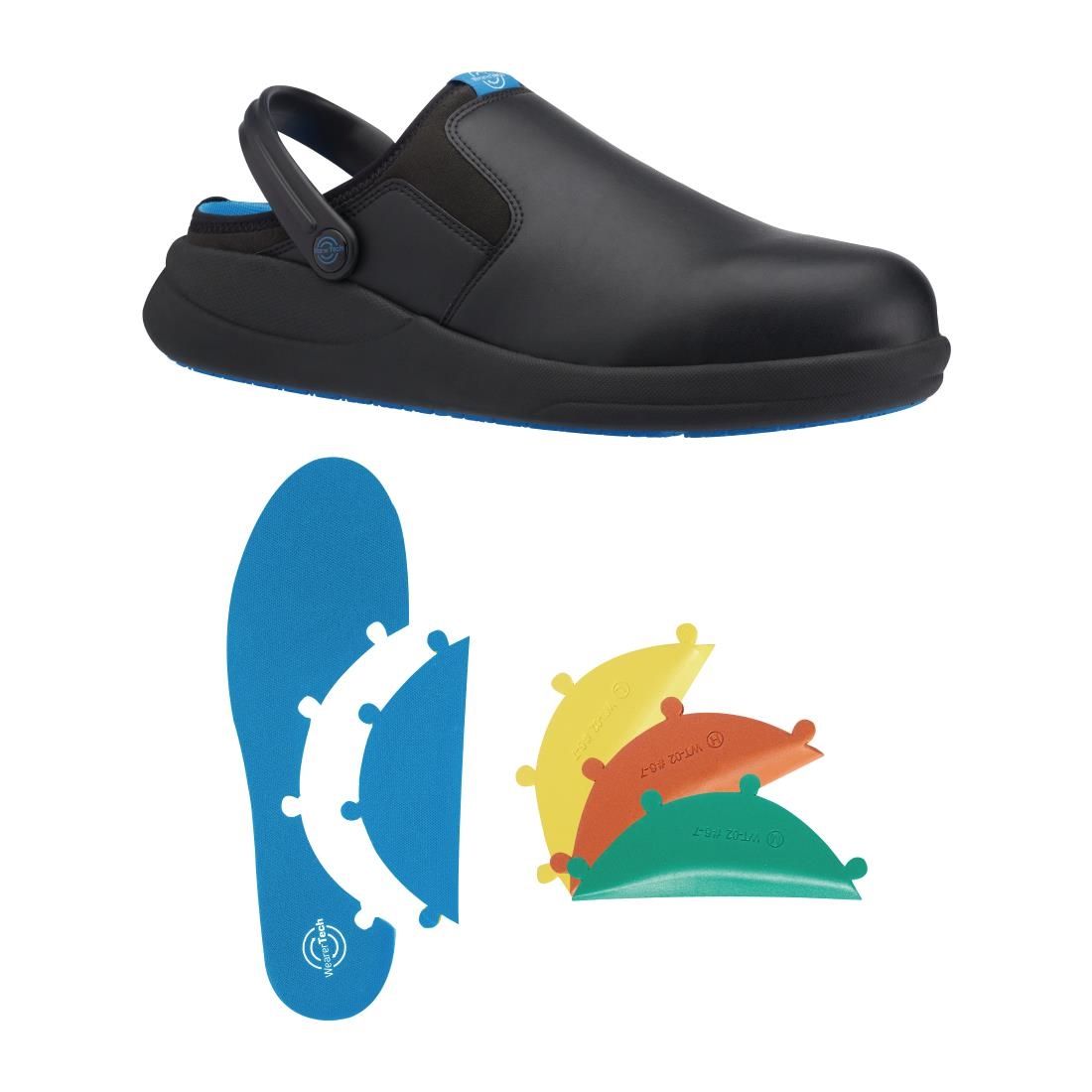 Size 47. UK Size 12Do you need a safety toe cap? But often find that they compromise on comfort? Our Transform Safety Toe offers you a comfortable work shoe with our modular insole technology to allow you to customise your comfort to the shape of your feet. With a contemporary clog design, you'll look as good as you'll feel.
