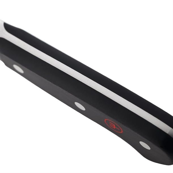 Wüsthof's European-style blades exhibit a 14.5° edge angle per side, finished off with a comfortable ergonomic handle made from POM - a durable material with tight molecular structure to resist fading, discolouration and build-up of insanitary material.