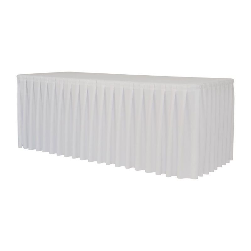 For XL580 Table DW160. Material: 100% PolyesterPleated white polyester table cover for ZOWN XL150 tables. Ideal for adding a formal finish to your folding furniture while helping to protect it from spills and stains.